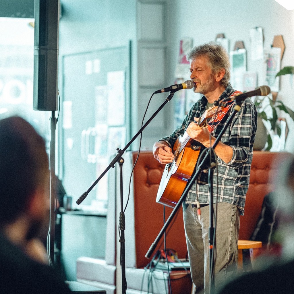 25th May, 2024 – with The Sitting Room, Friends of The Earth, Warehouse Cafe, Digbeth, B5 5TH. Set; Risk Averse, Hi Vis, Toe Dipping, Grateful, Long Grass, Grand Romantic Gesture, Four Seasons in One Day (Crowded House), No Rainy Days in Space
